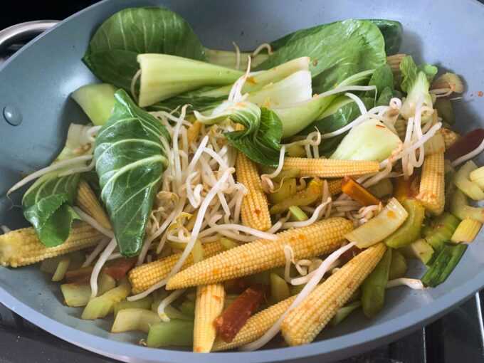 Employing tongs, I diligently stirred the contents, resulting in uniformly cooked vegetables over medium heat. Similar to the fry pan, the stir fry effortlessly slid onto a plate without any adherence issues. Once cooled, the wok effortlessly cleaned within seconds, exhibiting no signs of scratching.